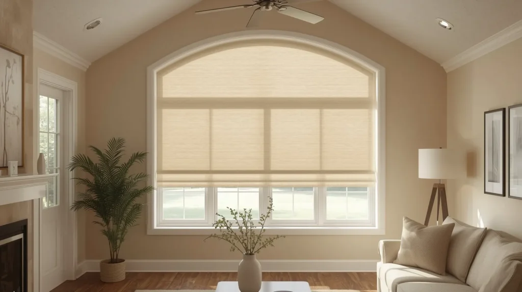 An eyebrow arch window shade is shaped to follow the curve at the top of the window. This is the main difference between it and standard coverings. Standard shades move straight up and down, leaving open areas or forcing the shade to bend or fold in ways that do not look clean. A shaped shade solves this problem by matching the arch exactly.